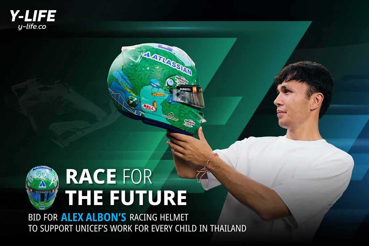 อเล็กซ์ อัลบอน อังศุสิงห์ นักแข่งรถฟอร์มูล่าวันชาวไทยเพียงหนึ่งเดียวในปัจจุบัน มอบหมวกกันน็อกที่ออกแบบขึ้นเป็นพิเศษสำหรับการแข่งขันสิงคโปร์กรังด์ปรีซ์ 2025 เพื่อนำออกประมูลการกุศล สนับสนุนงานของยูนิเซฟ ประเทศไทย โดยรายได้ทั้งหมดจะนำไปช่วยพัฒนาคุณภาพชีวิตของเด็กที่ขาดโอกาสทั่วประเทศ