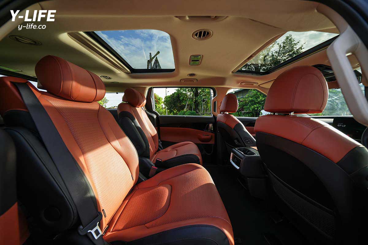 สำหรับเบาะที่นั่งของคนขับในรุ่น The new Kia Carnival HEV 7-seat Luxury ยังได้ติดตั้งระบบจดจำตำแหน่งเบาะนั่งและระบบ Welcome Seat สำหรับผู้ขับ เบาะนั่งคู่หน้าและเบาะนั่งแถวที่สองมาพร้อมระบบระบายอากาศและระบบอุ่นเบาะ สำหรับเบาะผู้โดยสารแถวสองเป็นแบบ Relaxation Seat ที่เปลี่ยนทุกการเดินทางให้เป็นความสะดวกสบายระดับเฟิร์สคลาสด้วยฟังก์ชันปรับเอนนอนที่สามารถปรับระดับได้เต็มรูปแบบ พร้อมเบาะรองขาแบบปรับไฟฟ้า มีโหมด One-touch Relaxation ที่สั่งงานด้วยการกดเพียงครั้งเดียวมอบความสบายให้กับผู้นั่งได้อย่างง่ายดาย