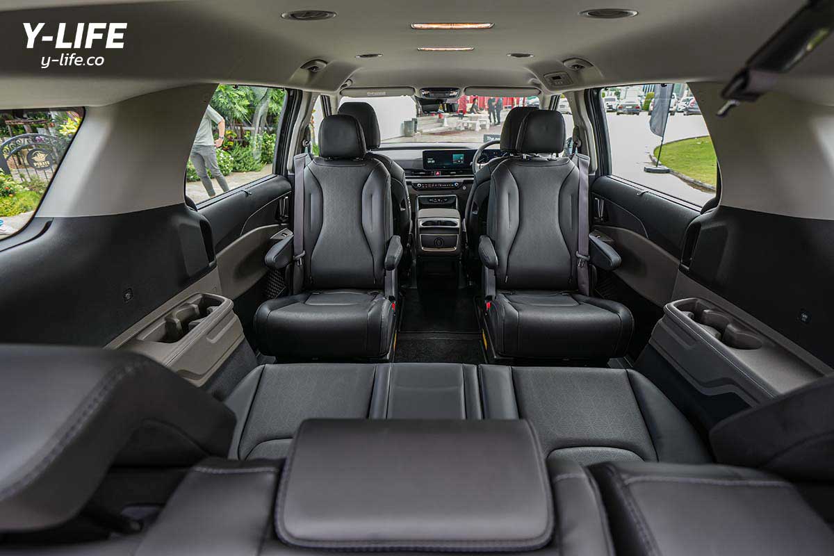เบาะนั่งแถวสองเป็นเบาะแบบ Captain Seats ที่สามารถถอดออกได้เพื่อเพิ่มความอเนกประสงค์ในการใช้งาน และยังสามารถปรับเปลี่ยนตำแหน่งให้เป็นแบบนั่งหันหน้าเข้าหากันได้ ให้สมาชิกในครอบครัวได้มีปฏิสัมพันธ์กันได้ตลอดทริป พร้อมกันนี้ The new Kia Carnival HEV 7-seater ทั้งสองรุ่นได้รับการปรับให้มีพื้นที่ทางเดิน (Walkthrough access) ที่เอื้อต่อการเข้า-ออกเบาะหลังได้สะดวกยิ่งขึ้นสำหรับสมาชิกครอบครัวทุกคน โดยเฉพาะเด็กและผู้สูงอายุ นอกจากนี้ ด้วยจุดยึดสําหรับติดตั้งเบาะนั่งสําหรับเด็ก (ISOFIX) ที่มีให้ในตำแหน่งที่นั่ง 4 ตำแหน่งเป็นมาตรฐาน (2 จุดบนเบาะนั่งแถวสอง และอีก 2 จุดบนเบาะแถวสาม) ซึ่งช่วยให้สามารถติดตั้งเบาะนั่งสำหรับเด็กในตำแหน่งต่าง ๆ ได้อย่างยืดหยุ่น เสริมความปลอดภัยและความสะดวกเพื่อตอบสนองความต้องการของครอบครัวได้ดีที่สุด