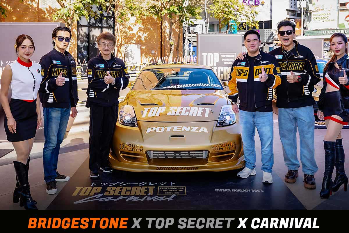 ภายในงานอัดแน่นด้วยความมันแบบเอ็กซ์คลูซีฟ ทั้งการจัดแสดงรถซิ่งสุดเท่ Top Secret Thailand มาพร้อมแก๊งร่างทองที่ติดยาง BRIDGESTONE POTENZA เรียกความสนใจจากเหล่าแฟนคลับอย่างล้นหลาม ไฮไลต์ของงานกับการแจกลายเซ็นบนเสื้อแจ็คเก็ตจาก เบียร์ ใบหยก พร้อมด้วย Smoky Nagata ผู้ก่อตั้ง Top Secret สำนักแต่งรถชื่อดังระดับตำนานจากญี่ปุ่น นอกจากนี้บริดจสโตนยังนำเสนอ BRIDGESTONE POTENZA Adrenalin RE005 ยางรถยนต์สปอร์ตพรีเมียมรุ่นใหม่ล่าสุดให้ผู้ร่วมงานได้สัมผัสประสบการณ์มอเตอร์สปอร์ต และยังจัดเต็มความสนุกด้วยกิจกรรมแจกของที่ระลึก อาทิ กระป๋องน้ำดื่มสีทองสุดลิมิเต็ด Bridgestone x Top Secret ส่วนลดยางบริดจสโตน 15% และอื่นๆ อีกมากมาย