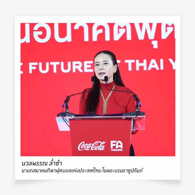 นวลพรรณ ล่ำซำ นายกสมาคมกีฬาฟุตบอลแห่งประเทศไทย ในพระบรมราชูปถัมภ์ กล่าวว่า “ความร่วมมือระหว่าง สมาคมกีฬาฟุตบอลแห่งประเทศไทยฯ กับโคคา-โคล่า ประเทศไทย เป็นอีกหนึ่งก้าวสำคัญ ของวงการฟุตบอลไทย โดยเฉพาะในระดับเยาวชน สำหรับ รุ่นอายุไม่เกิน 17 ปี เป็นหนึ่งในรุ่นที่สมาคมฯ ให้ความสำคัญมากที่สุด เพราะนอกจากเป็นช่วงอายุ ที่นักกีฬามีโอกาสเข้าสู่เส้นทางความฝัน คือ การเป็นนักกีฬา อาชีพแล้ว ยังสอดคล้องกับในระดับนานาชาติ หลังสหพันธ์ฟุตบอลนานาชาติ (ฟีฟ่า) ปรับให้มีการจัดการแข่งขัน ฟุตบอลโลกในรุ่นอายุไม่เกิน 17 ปี ขึ้นต่อเนื่องในทุกปี การกลับมาของ “โค้ก® คัพ” ในรูปแบบใหม่ จึงถือเป็นส่วน เติมเต็มสำคัญ ในเรื่องทรัพยากรของนักกีฬา และเป็นประตูสู่โอกาสไปฟุตบอลโลก ของ ทีมชาติไทย มากยิ่งขึ้น”