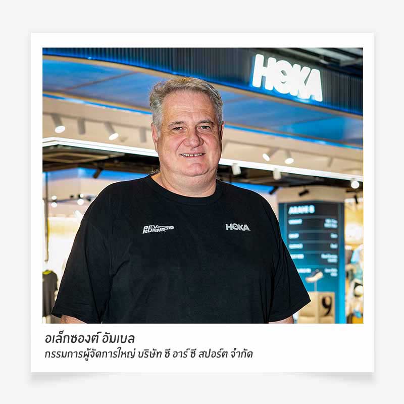 อเล็กซองต์ อัมเบล กรรมการผู้จัดการใหญ่ บริษัท ซี อาร์ ซี สปอร์ต จำกัด (CRC Sports) ในเครือเซ็นทรัล รีเทล กล่าวว่า “สยามเซ็นเตอร์คือศูนย์กลางของพลังสร้างสรรค์และคนเมืองรุ่นใหม่ การเปิดตัว Hybrid Flagship Store ที่นี่คือก้าวสำคัญของเราในการเสริมความแข็งแกร่งให้กลุ่มธุรกิจกีฬา และผลักดันให้ HOKA เป็นผู้นำรองเท้าวิ่งและ Active Lifestyle ในภูมิภาคเอเชียตะวันออกเฉียงใต้ โดยเฉพาะในกลุ่มผู้บริโภคที่มีอิทธิพลต่อเทรนด์และวัฒนธรรมการใช้ชีวิตของเมืองหลวง”
