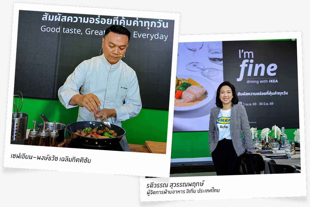 อิเกีย ประเทศไทย จับมือ เชฟเอียน-พงษ์ธวัช เฉลิมกิตติชัย เปิดตัว 2 เมนูพิเศษ ได้แก่ ปลาหิมะซอสไวน์ขาว และมีทบอลซอสทรัฟเฟิล ภายใต้แคมเปญ “I’m Fine Dining with IKEA สัมผัสความอร่อยที่คุ้มค่าทุกวัน” เพื่อนำเสนอการตีความประสบการณ์ไฟน์ไดนิ่งในรูปแบบที่เข้าถึงได้ง่ายและคุ้มค่าในชีวิตประจำวัน โดยเมนูพิเศษทั้งสองรายการจะเปิดให้ลิ้มลองตั้งแต่วันที่ 1 เมษายน – 30 มิถุนายน 2569 พร้อมชวนทุกคนต่อยอดแรงบันดาลใจสู่การสร้างประสบการณ์ไฟน์ไดนิ่งที่บ้าน ผ่านโซลูชันครัว เครื่องครัว และเครื่องใช้บนโต๊ะอาหารจากอิเกีย ที่ออกแบบมาเพื่อช่วยให้การทำอาหารและการจัดเสิร์ฟในชีวิตประจำวันเป็นเรื่องง่ายและสวยงามยิ่งขึ้น